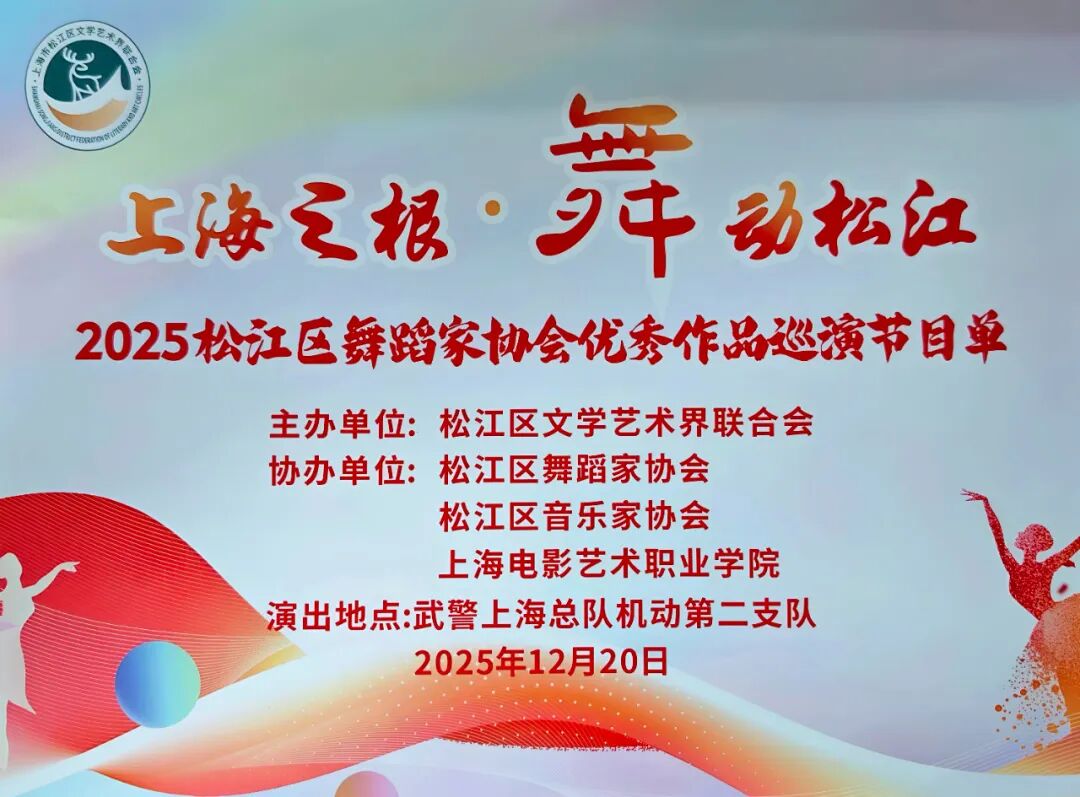 2025年12月20日,为深入贯彻落实党的文艺工作方针,积极响应文化惠民政策号召,由松江区文学艺术界联合会主办,松江区舞蹈家协会、上海电影艺术职业学院、松江音乐家协会联合承办的“上海之根·舞动松江”主题巡演在武警上海总队机动第二支队华阳营区顺利举办。
