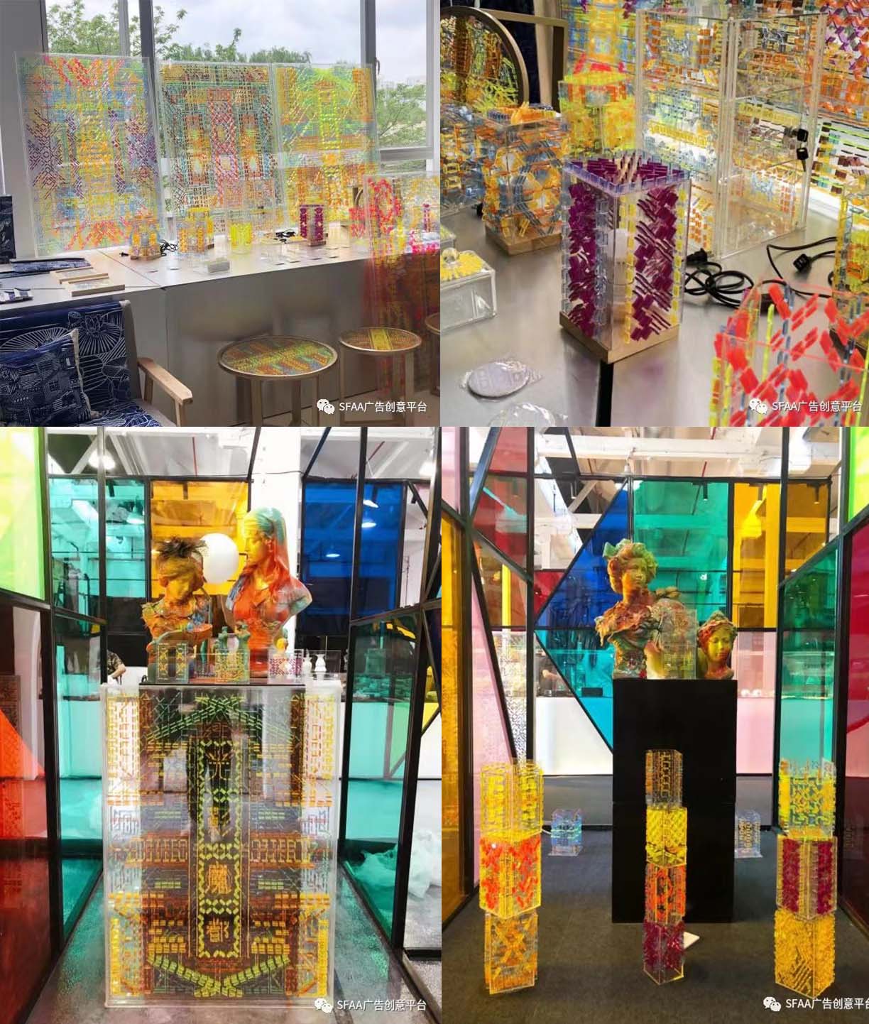 该组作品通过光影的新形式体现ARTDECO建筑风格,拼贴亚克力小块,打上灯光,再现老上海海派建筑的ARTDECO装饰艺术风格。作者给予它新的活力来体现上海“追求时尚,中西合璧、兼容并蓄”的“海派”城市文化特征。