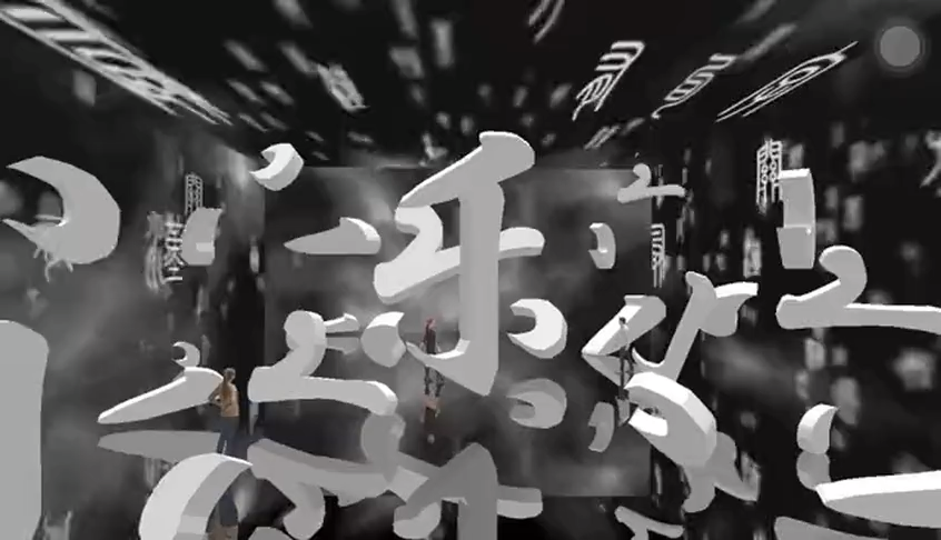 内容呈现上选择了《兰亭序》,选择乐字作为道具装置,是因为全文围绕着兰亭集会的盛况之乐,从而延伸出万物有生就有灭,有乐就有悲的思想。作品中,通过打碎汉字,利用拆分部首偏旁和结构,而达到一种解构的艺术,通过不同的角度,可以看到错乱、完整的字。通过作品呼吁人们了解汉字文化,让汉字的文化除了在对话使用中,在形象、形式上更好的传播与传承这项国粹与艺术,在生活中也能会欣赏其丰富的内涵,能够对汉字有重新的认识。