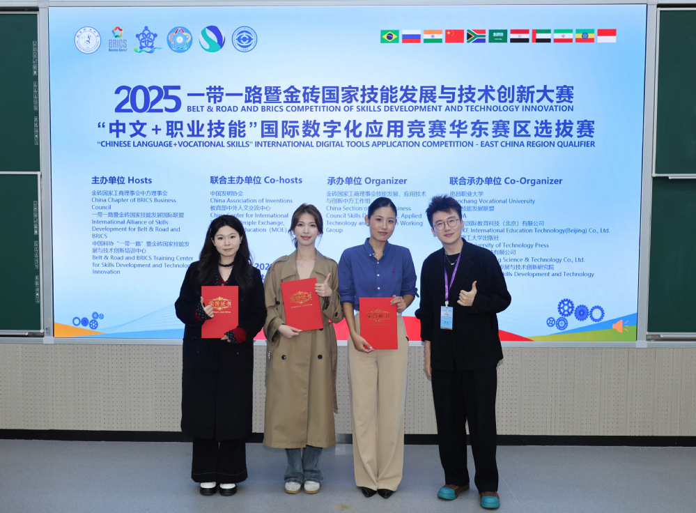 近日,2025一带一路暨金砖国家技能发展与技术创新大赛“中文+职业技能”国际数字化应用竞赛华东赛区选拔赛圆满落幕。在我校播音与主持专业教师刘赛航老师的悉心指导下,专业选派的三位同学凭借出色的表现载誉而归,在近200名参赛选手中,一举夺得一等奖1项、二等奖2项的优异成绩,并全部成功晋级全国总决赛!此次佳绩,充分展现了我播音与主持专业学子卓越的语言应用能力、跨文化沟通能力与数字化创新思维。